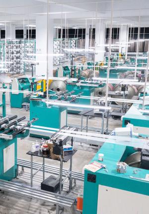 Vi tilbyr et bredt utvalg av stoffer, blant annet polyvarpstrikket kordfløyel, Holland-fløyel, utbrenthetsserier og børsteserier som KS-fløyel, supermykt stoff og mesh-stoff. Nylige investeringer i banebrytende maskiner, blant annet Karl Mayer-varpstrikkemaskiner med høy tetthet, gjør det mulig for oss å møte den økende etterspørselen etter sportsklær og yogastoffer.